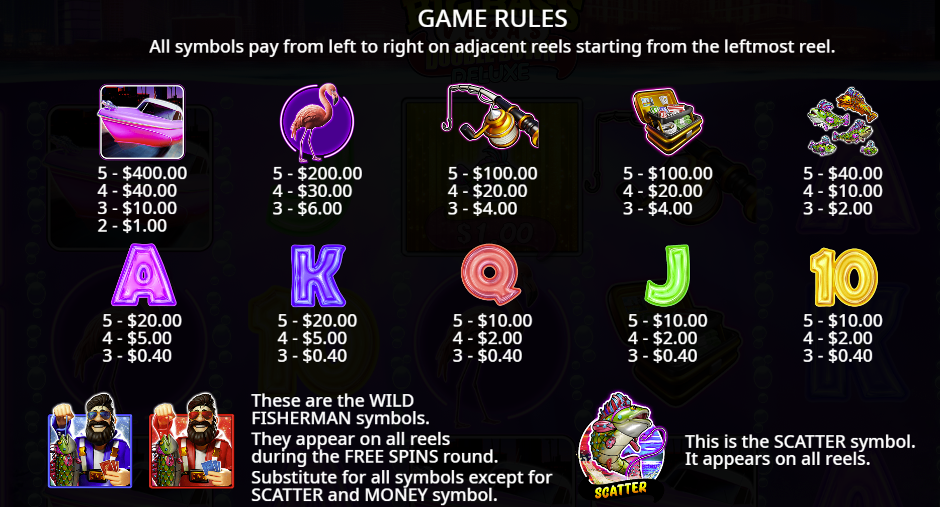 - Enhanced Sticky Fisherman (in Free Spins): Like in Splash, the Fisherman Wild becomes sticky on reel 5 for the duration of the free spins, guaranteeing the collection of all Money Symbols that land. Each collection still awards +1 additional free spin.